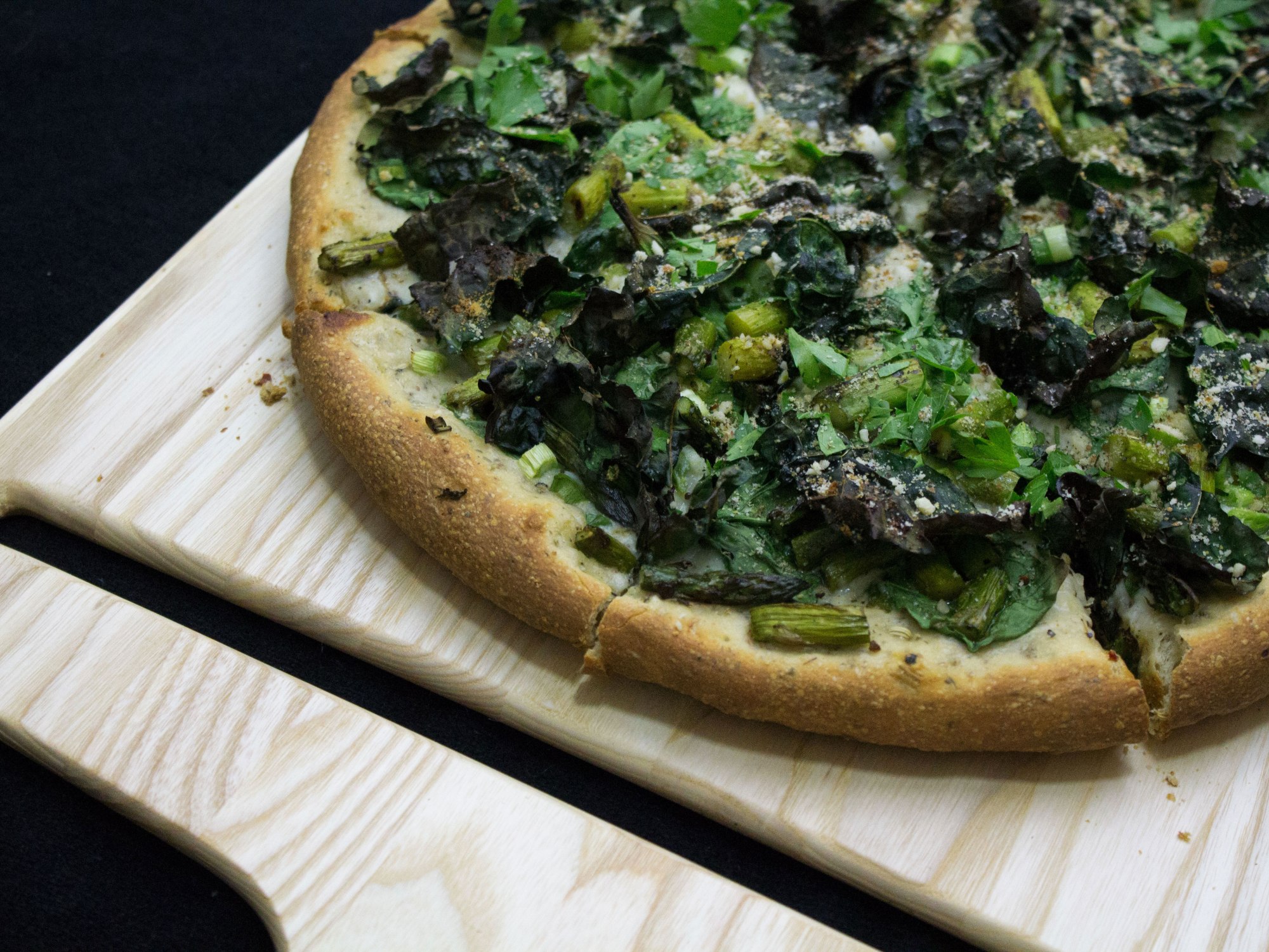 If you squint your eyes real hard, it looks like a salad! (Still a pizza though.) Named after our ninth favorite Steve Guttenberg film, a creamy almond bechamel makes this ‘za taste like alfredo you can eat with your hands.